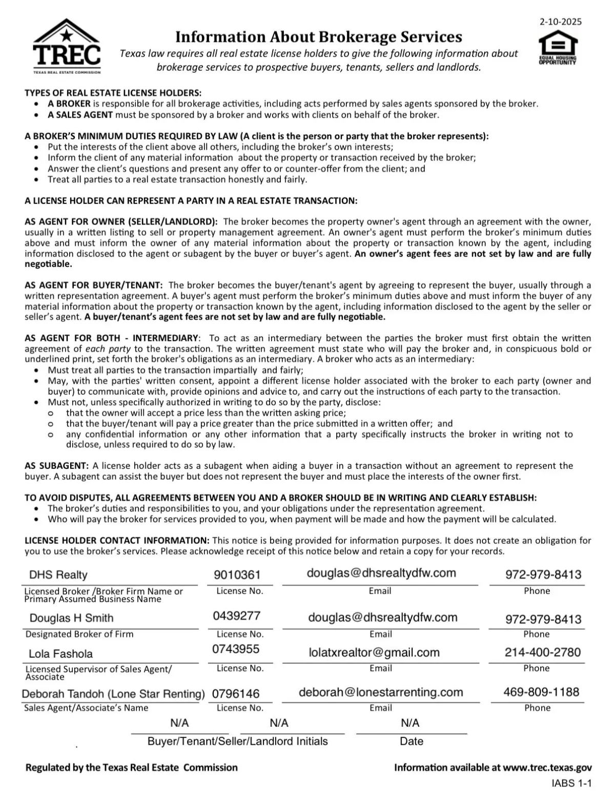 Information About Brokerage Services